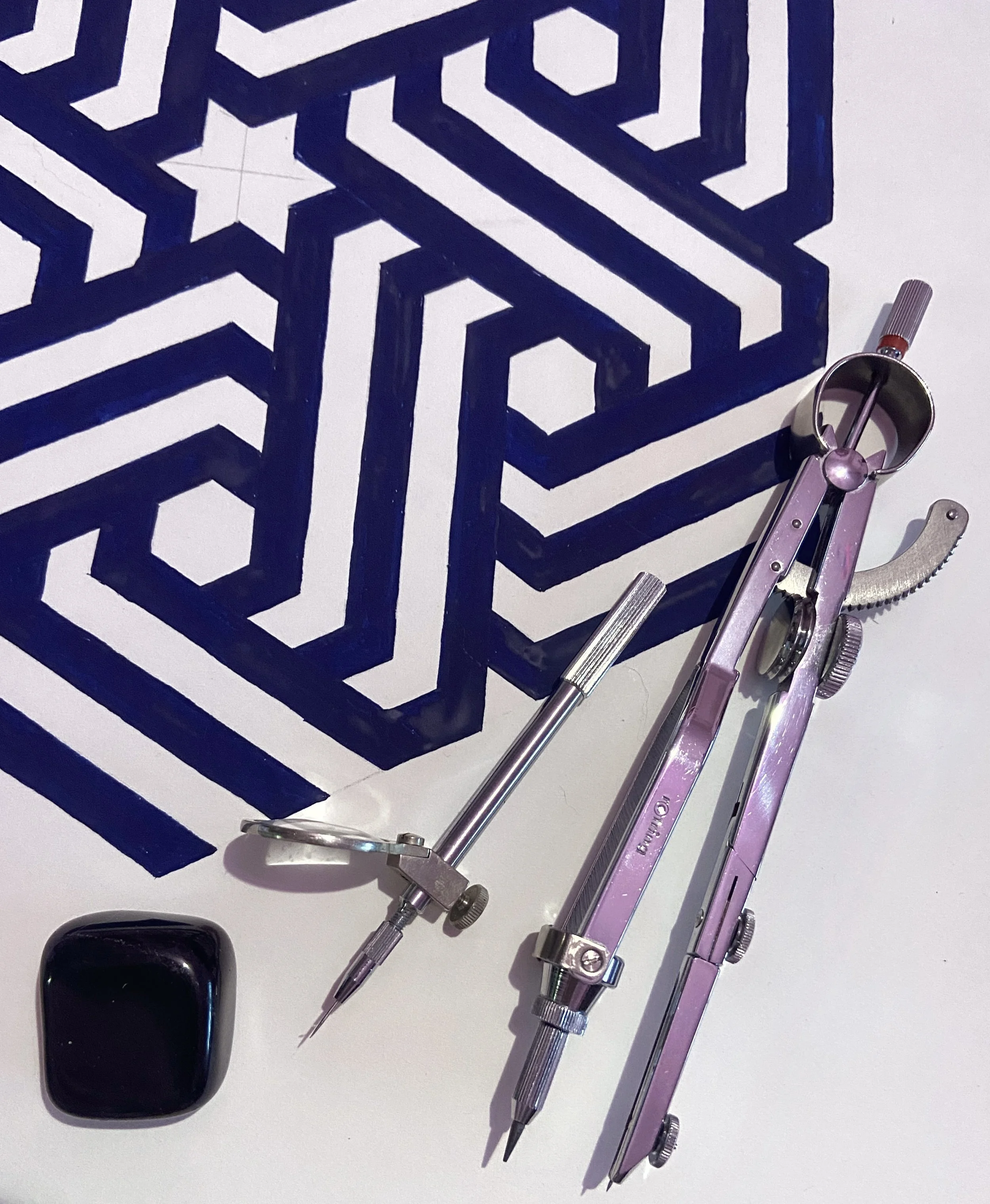 Each session will focus on a different design, looking at where it comes from and how it’s created, guiding you step-by-step as we draw together, followed by a Q&A and a chance to share your work. One of the unique aspects of this world of geometry is the sense of community each course fosters, building connections and friendships as we explore the beauty of geometric patterns. I look forward to seeing familiar faces regularly!